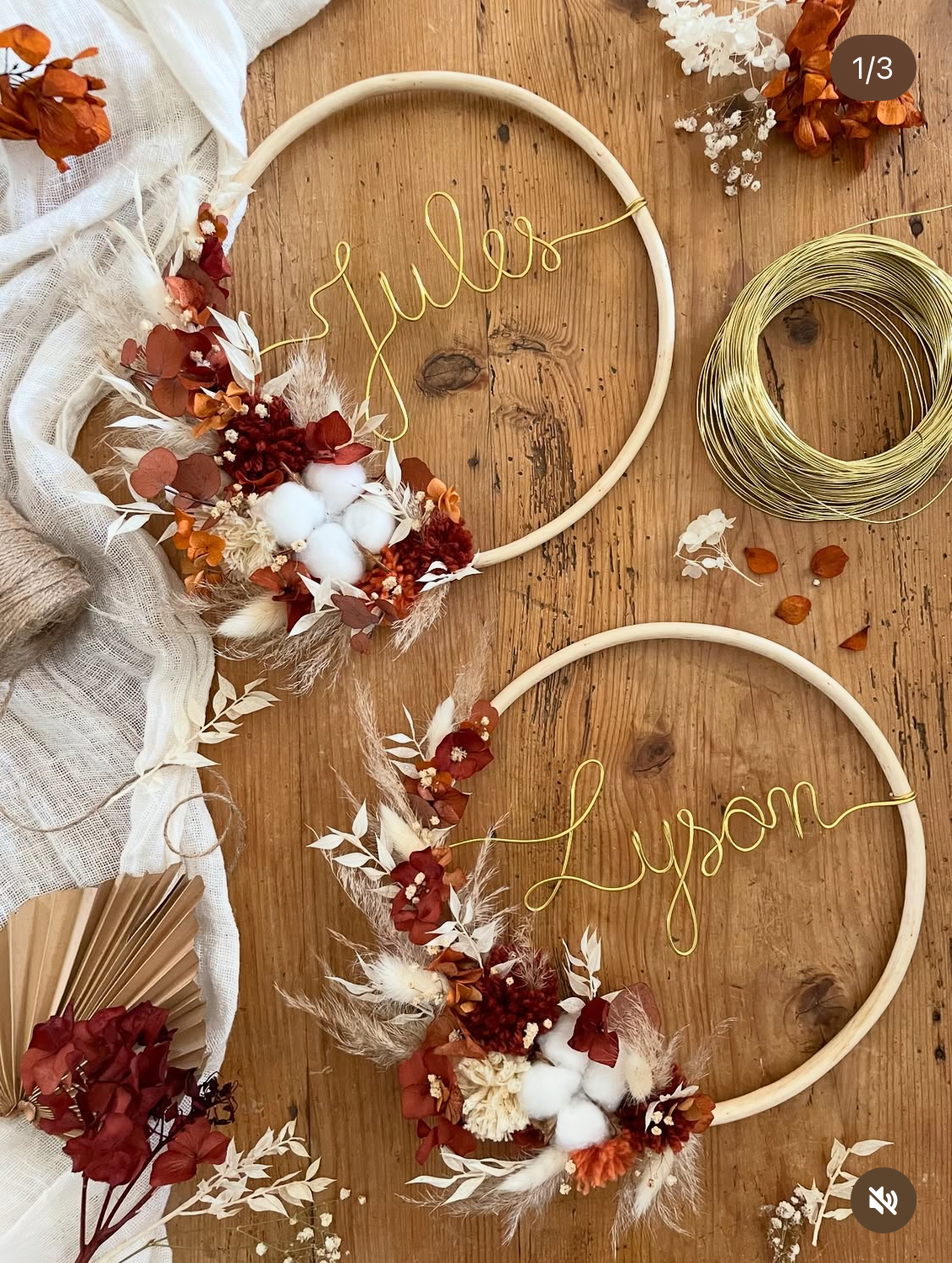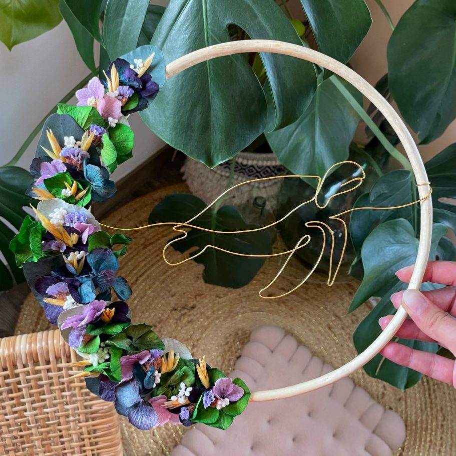 Chaque pièce est réalisée avec soin, dans un univers doux et poétique, inspiré par la nature et les teintes chaleureuses du Sud. Couronnes de fleurs séchées, décorations murales et créations délicates prennent vie à la main, avec une attention particulière portée aux détails et à l’harmonie.